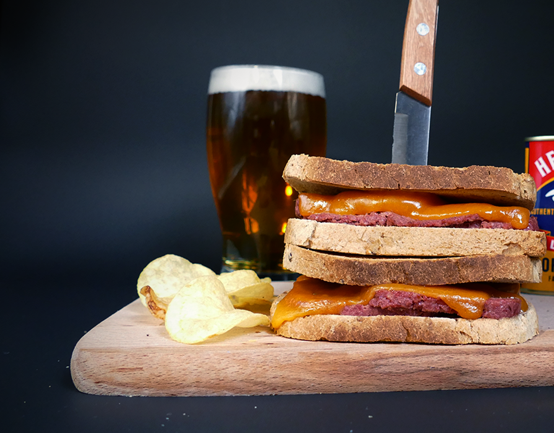 - Coupez le corned beef en tranches. Faîtes les griller à la poêle de chaque côté, puis ajoutez les tranches de cheddar sur le corned beef.