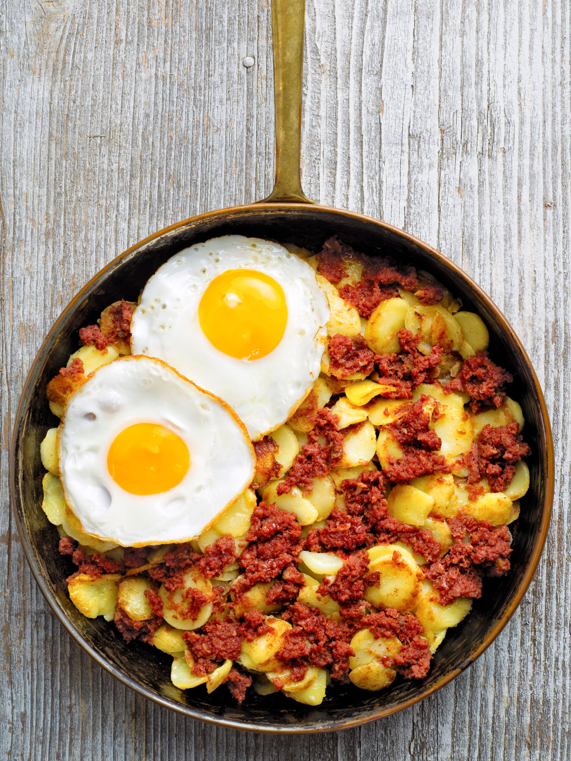 - Découpez le Corned-Beef en petits cubes et l’ajouter à la préparation.